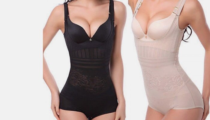 - Комбинация. Представляет собой корректирующее нижнее белье в виде короткого платья на тонких бретелях. Моделирует область живота, ягодиц и груди