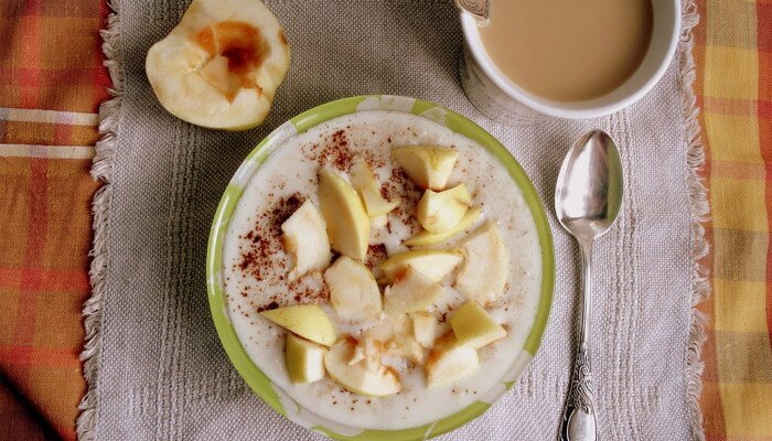 - Варите овсяные хлопья с яблоком в 1 стакане воды 2-3 минуты.