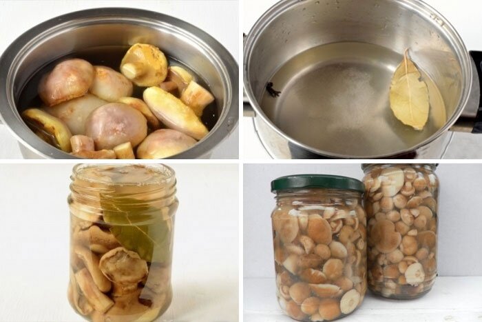 - Чистый маринад, который готовят отдельно, заливая к предварительно отваренным опятам, маслятам и т.д.. Заливка получается прозрачной, а консервация светлой, но аромат со вкусом получаются невыразительными.