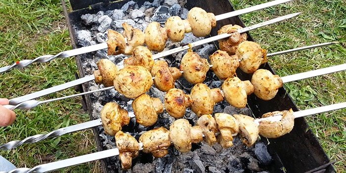 Шампиньоны в майонезе для шашлыка – это очень аппетитно, сытно, вкусно! Перед готовкой грибы надо ненадолго замариновать с эмалированной миске, чтобы они получились сочными, а для придания пикантного вкуса к ним добавляют разные специи. Вместо майонеза иногда используют сметану, но чтобы потом приготовить шашлык из шампиньонов, мариновать грибы придется не менее 10 часов, лучше, если оставить их в сметане со специями на ночь. Жареный на костре шашлык из шампиньонов станет хорошей альтернативой мясу.