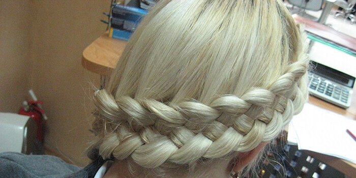Колосок по кругу головы – одна из самых нестандартных, роскошных причесок. Лучше всего она подходит для густых волос. Если волосы тонкие, уместно сделать легкий начес у корней. Прическа требует обучения и небольшой практики, поэтому потренируйтесь на других волосах, запаситесь терпением и приступайте к работе по следующей схеме: