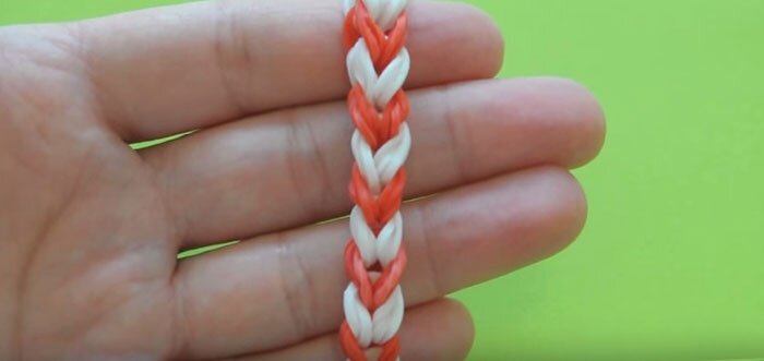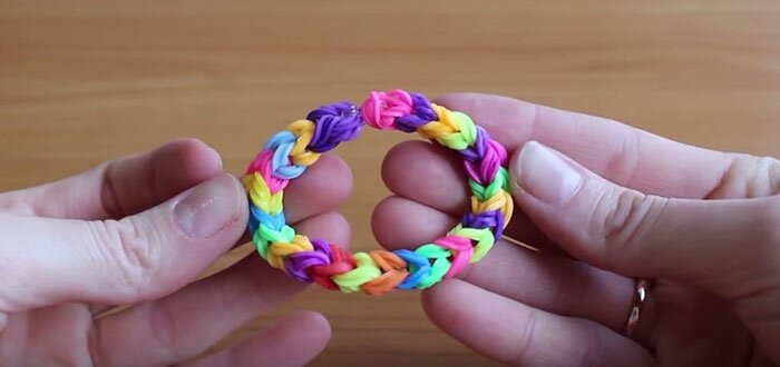 - Продолжайте плести, пока цветные кольца-резинки не закончатся.