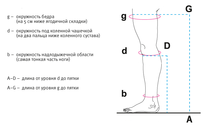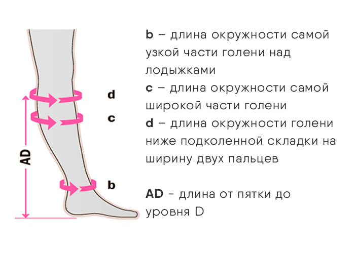 Гольфы подбирают, исходя из 4-х замеров: