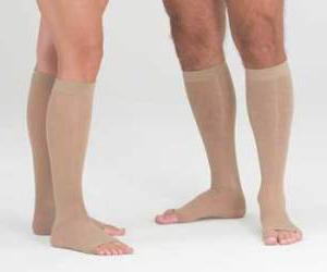 Поэтому лучше носить хотя бы тонкие компрессионные гольфы первого класса, чем вообще ничего. Некоторые производители выпускают летние модели с открытым носком для улучшения вентиляции стопы.