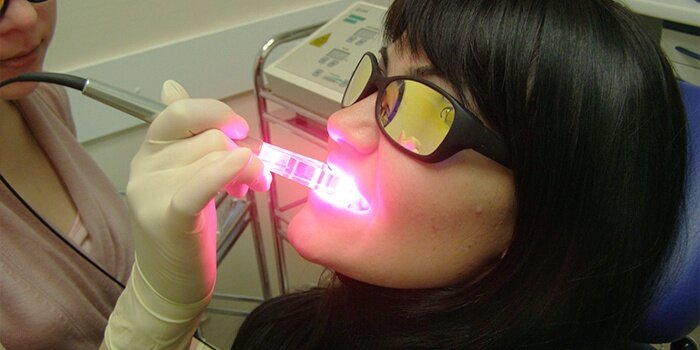- Лазерный метод – современный, полностью безопасный для эмали прием, основанный на измельчении камня лазером и выведении его остатков при помощи струи воды и воздуха. В результате процесса полностью удаляются все твердые образования, которые выглядели на фото темными скоплениями.