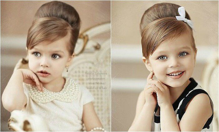 На маленьких девочках очаровательно смотрятся ретро-прически – высокие бабетты, пышные начесы и распущенные волосы, украшенные лентой, завитые объемные локоны. Чтобы такая укладка получилась идеальной, желательно делать ее в салоне с профессиональным стилистом, но, потренировавшись, каждая мама сможет создать такую прическу в детский сад своими руками. Попробуйте создать укладку, популярной в шестидесятых годах, под названием бабетта. Для нее понадобится расческа, резинка, валик, шпильки, невидимки и лак. Вот поэтапная инструкция создания бабетты: