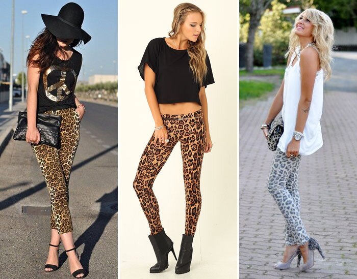 Модный хищный принт на леггинсах выглядит чувственно, поэтому необходимо придерживаться некоторых правил при создании образа в этим элементом одежды. Хищный принт лосин плохо гармонируют с короткими блузками. Хорошо леопардовые леггинсы выглядят в ансамбле с высокими каблуками, одеждой мятного, оранжевого, черного, белого, коричневого цветов, оттенка хаки, крупной и яркой бижутерией, туниками, кардиганами, длинными рубашками, короткими платьями.