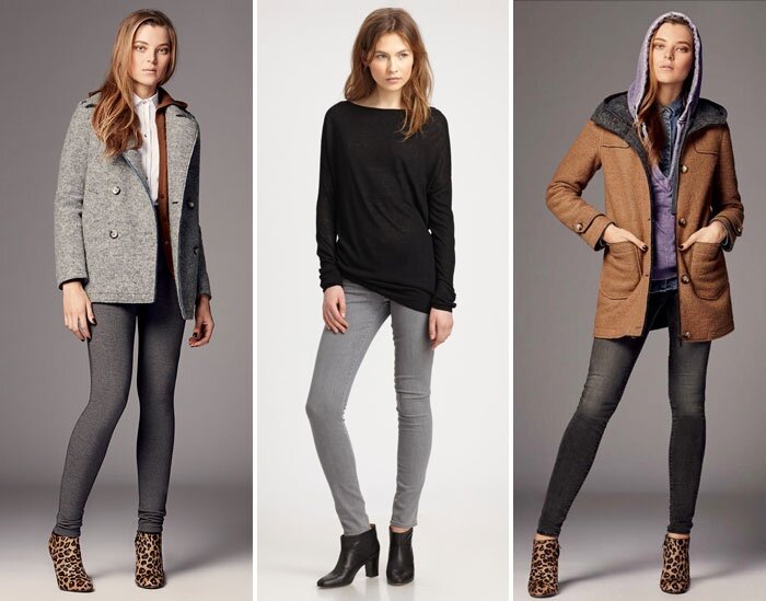 Под тонкие леггинсы серого оттенка прекрасно подойдут: короткое платье, блуза, жакет. Используйте с ними в качестве обуви сапоги-ботфорты из черной или фиолетовой замши, серые ботильоны, туфли с широким или высоким каблуком. Яркий аксессуар в виде шарфика или головного убора, сочетаясь с асфальтного цвета леггинсами, придаст образу девушки неповторимый, стильный вид.