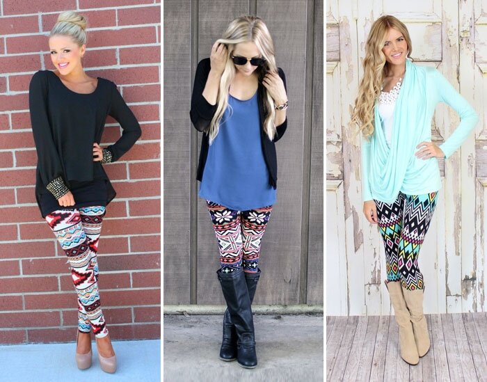 Пестрые рисунки на лосинах особенно модны в нынешнем сезоне. Они подойдут как для повседневного ношения, так и для вечеринки. Чтобы уравновесить яркие элементы, леггинсы с орнаментом лучше носить под однотонные вещи. Но смелые девушки, имеющие идеальное чувство вкуса, могут попробовать сочетать сразу две вещи с принтом. Модные скандинавские узоры с оленями, азиатские, африканские национальные орнаменты на леггинсах помогут создать неповторимый образ девушки. К ним подойдут медные, деревянные украшения.
