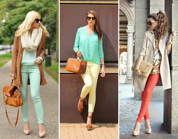 Модные яркие лосины – идеальный вариант одежды для лета и весны. Они сделают девушку эффектной, привлекательной. Цветные леггинсы хорошо подойдут под длинный, объемный верх. Его цвет лучше подбирать в спокойных базовых тонах: бежевом, черном, сером, коричневом. Или же надевать всю одежду в одной цветовой гамме. Например, песочного оттенка шорты лучше носить с кирпичными лосинами.