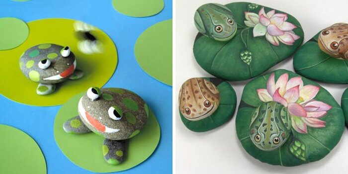 Детская комната – это территория сказки, неведомых зверушек, красочных поделок. Дополните уже созданную ранее ауру этого места симпатичными поделками для детей из камней в виде забавных лягушат. Они могут быть большими или маленькими, разного цвета, формы. Ваш ребенок с удовольствием не только полюбуется своими трудами, но и радостно примется в игры, все глубже увлекаясь в сказочный мир.