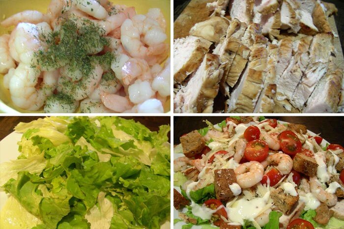 Цезарь с курицей и креветками под майонезом