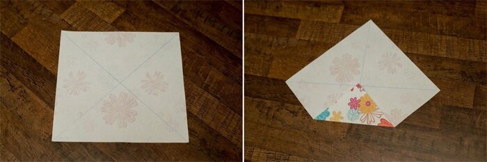 - Правый нижний квадрат сгибаем сверху вниз по диагонали.