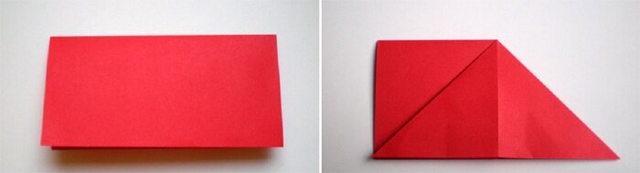 Роза оригами – популярная поделка в этой технике. Делается она быстро и легко из одного квадратного листа бумаги, окрашенного с двух сторон в красный цвет. Поэтапная инструкция: