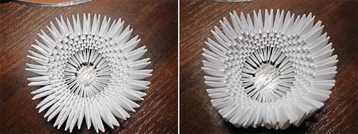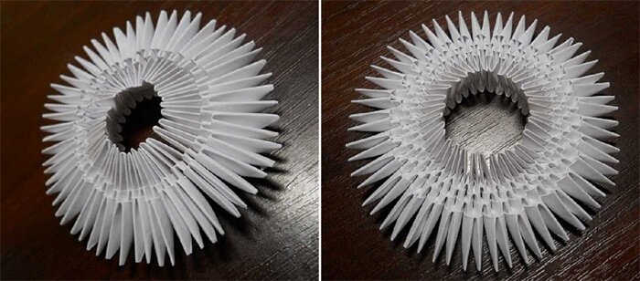 - Собираем так три ряда, каждый из которых состоит из 30 модулей. Замыкаем в круг.