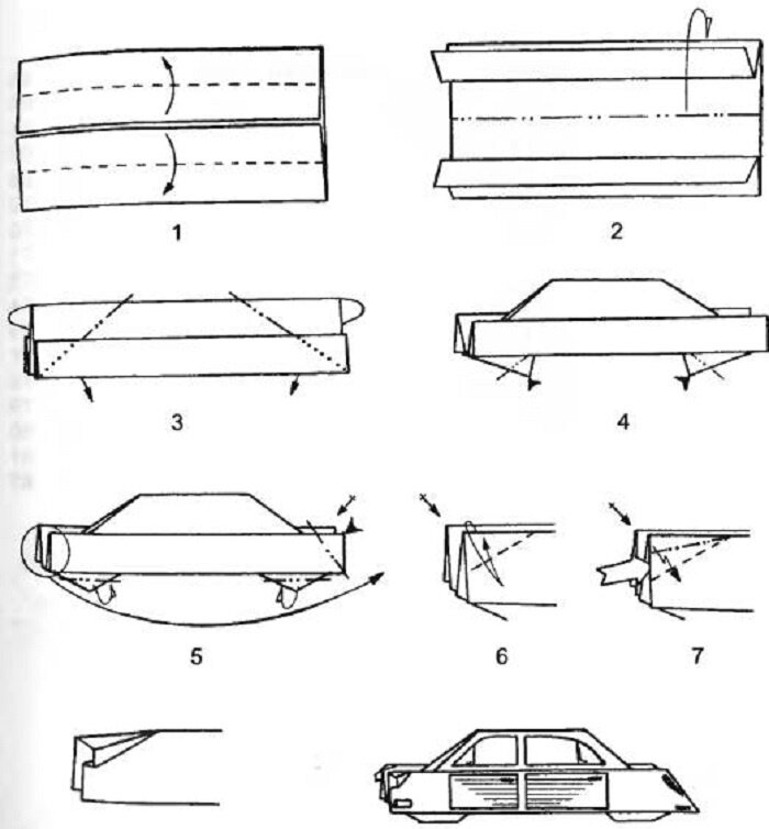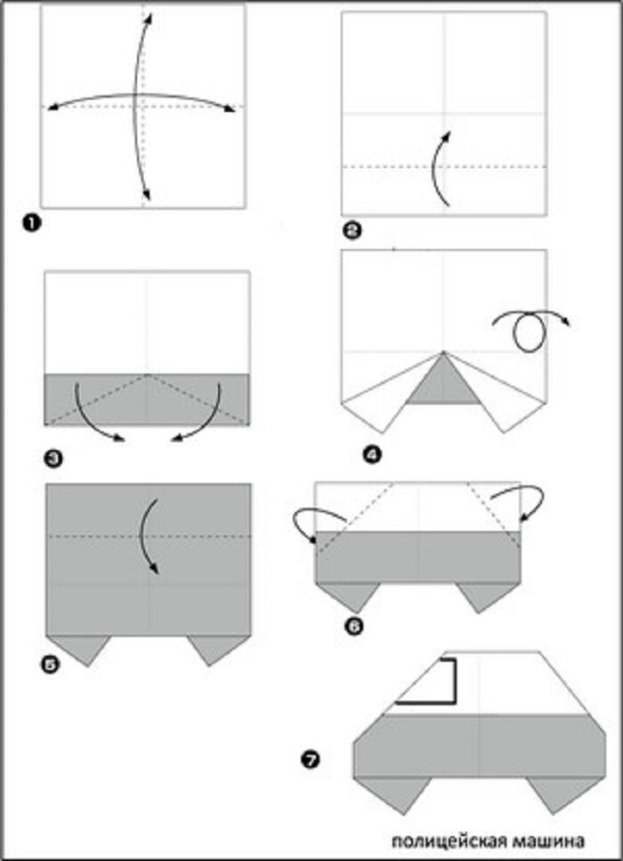 Следующей популярной поделкой из бумаги считается машинка. Каждый мальчишка любил играть ими в детстве. Если вы не знаете, как ее сделать, вам помогут приведенные ниже легкие схемы гоночных и обычных машинок, грузовиков, полицейских автомобилей. Если следовать инструкции, то сборка модели не отнимет много времени, а результат получится отменным.