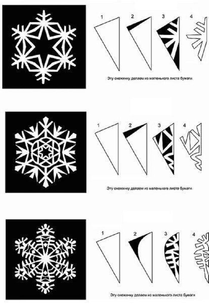 Бумажные снежинки оригами и киригами – прекрасный способ украшения собственного жилища к новогодним праздникам. Такие поделки вы можете подвесить возле окон, на елку, люстру, сделать из них гирлянду и развесить вдоль стен, детский мобиль. Каждая схема дает создать уникальную, неповторимую снежинку. Готовые изделия вы можете окрасить серебряным, голубым с блестками цветом краской из баллончика, либо по краям нанести клей с глиттером, чтобы сделать украшение еще интереснее.