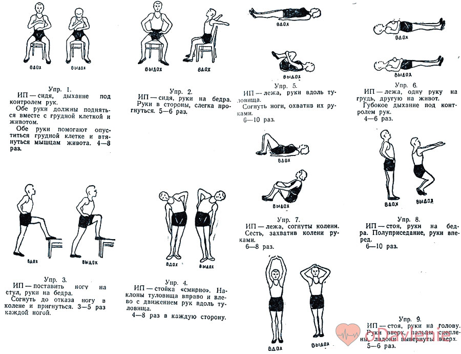 Комплекс ЛФК при гипотонии содержит следующие упражнения: