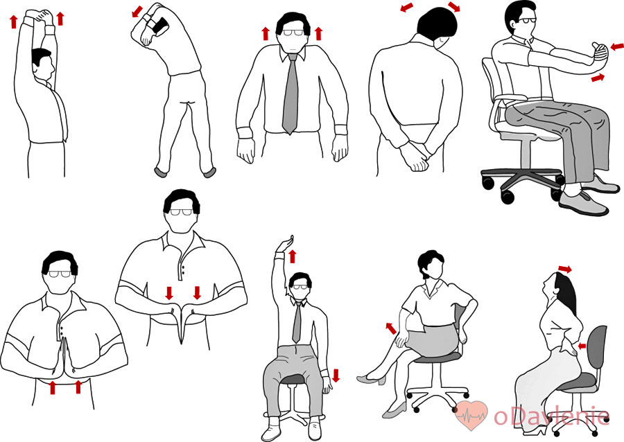Такие упражнения для стабилизации давления показаны и людям с сидячей работой с целью профилактики указанных заболеваний. Выполнять их можно в перерыв прямо за рабочим столом. Примеры эффективных упражнений: