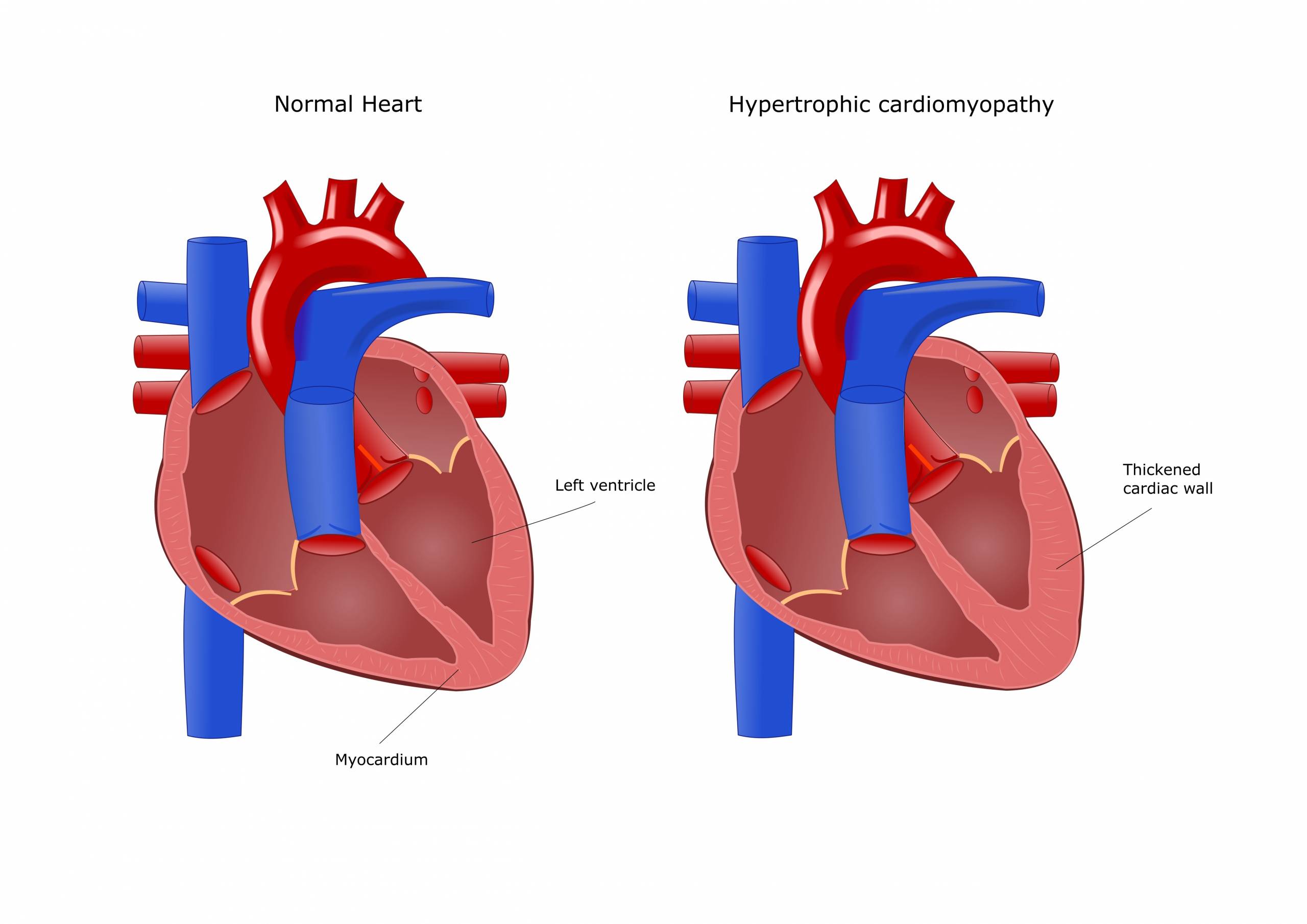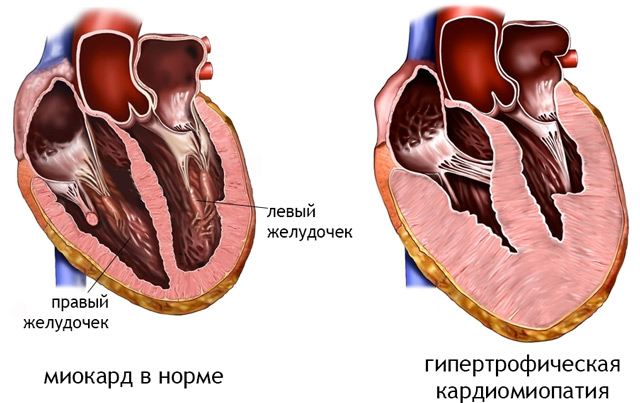 - При наследственной мутации в некоторых генах, ответственных за синтез белков, которые содержится в мышечных клетках миокарда, происходит увеличение толщины стенок сердца. Это состояние называют гипертрофической кардиомиопатией.