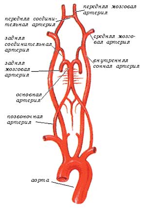 - мозговой артерией (передней и задней);