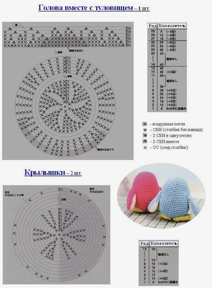 Вязаные крючком игрушки амигуруми стали очень популярны. Это японский вид рукоделия, в результате которого рукодельница создает маленькую зверушку с характерными особенностями. В большинстве случаев вязание этих предметов ограничивается такими приемами, как соединительный столбик, столбик без накида, воздушная петля. Амигуруми могут быть не только предметом для игр детей, но и прекрасным сувениром, украшением интерьера, брелоком. Чтобы связать пингвина по схеме с подробным описанием, сделайте сначала лапки и клюв, а после – тело и крылья.