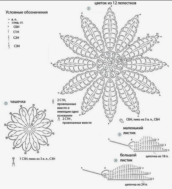 - Каждый ряд начинается с набора трех воздушных петель, что указано в схеме.